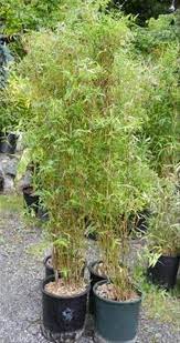 A China native cup bamboo with graceful curving green to orange brown stems and green tufted foliage.